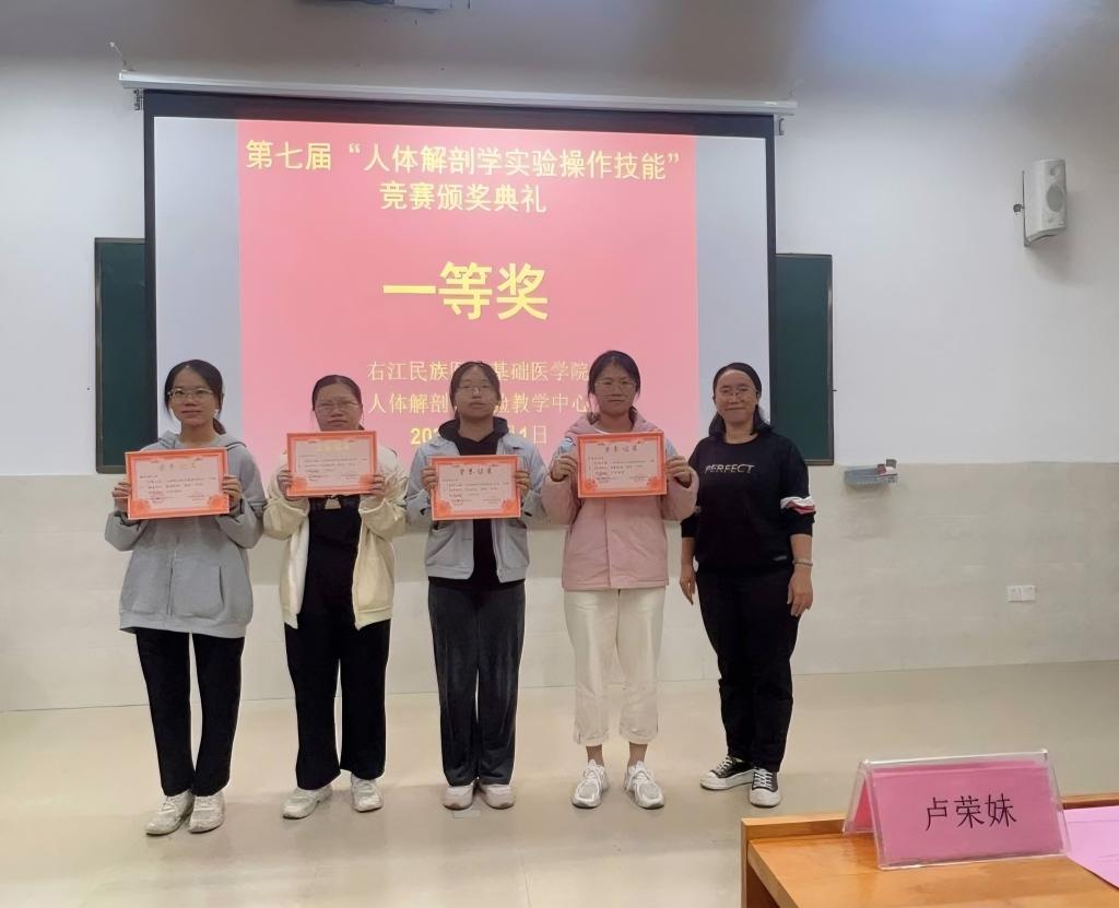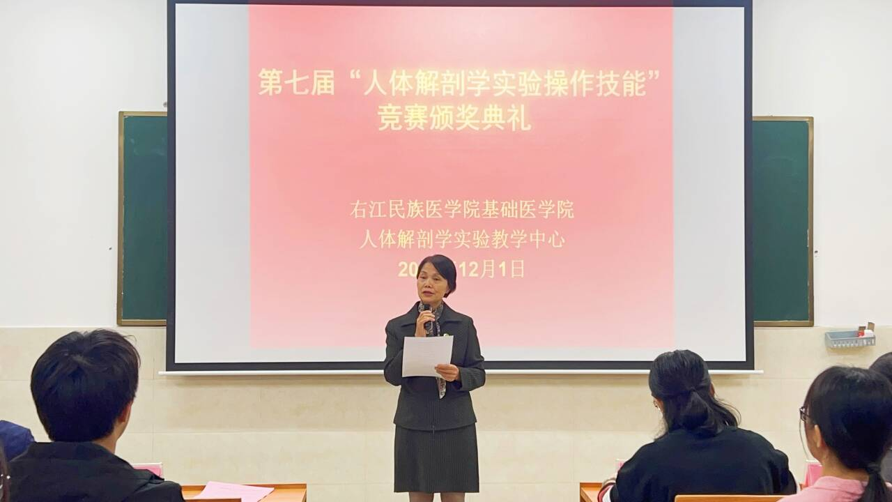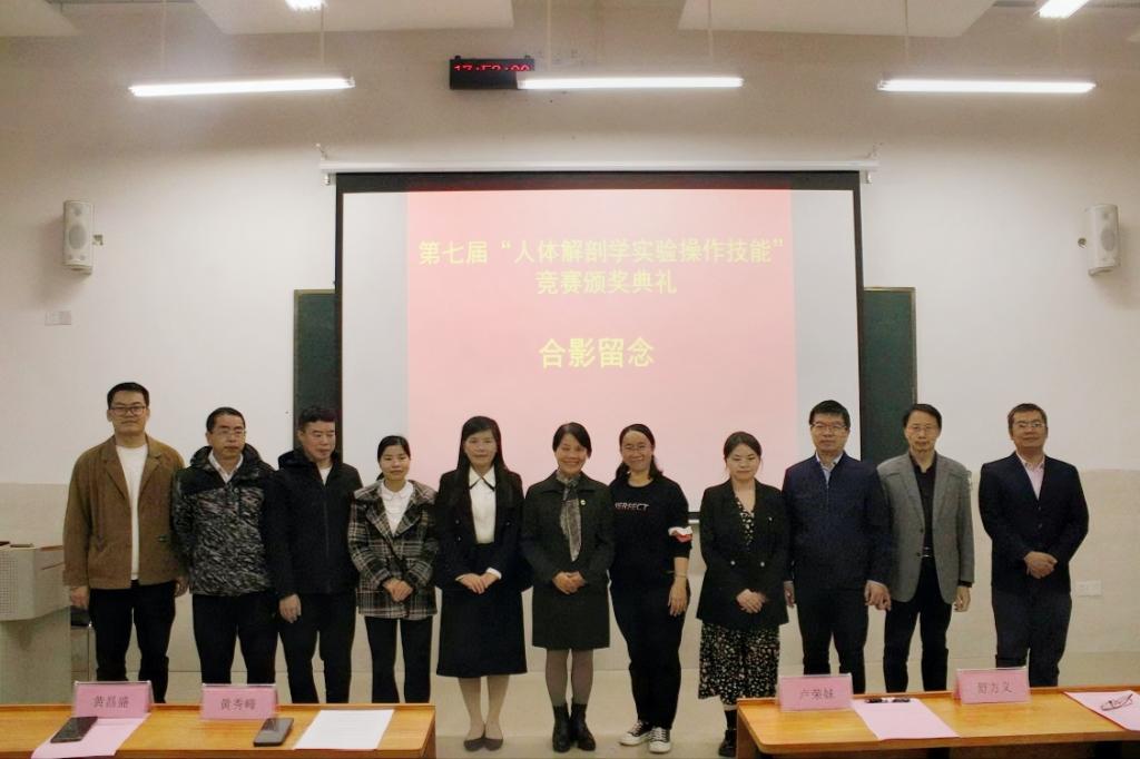 12月1日下午,由伟德国际victor1946主办、人体解剖学实验教学中心承办的第七届“人体解剖学实验操作技能”竞赛颁奖仪式在百东校区守正楼C103教室隆重举行。伟德国际victor1946党委副书记卢荣妹、人体解剖学实验教学中心主任黄秀峰教授、教育评价与教师发展中心舒方义副教授、人体解剖学实验教学中心副主任黄昌盛教授,人体解剖学教研室杨园园副教授、李克明副主任医师,人体解剖学实验教学中心全体教师以及参加本次竞赛获奖的员工参加颁奖典礼,颁奖典礼由杨照英老师主持。
