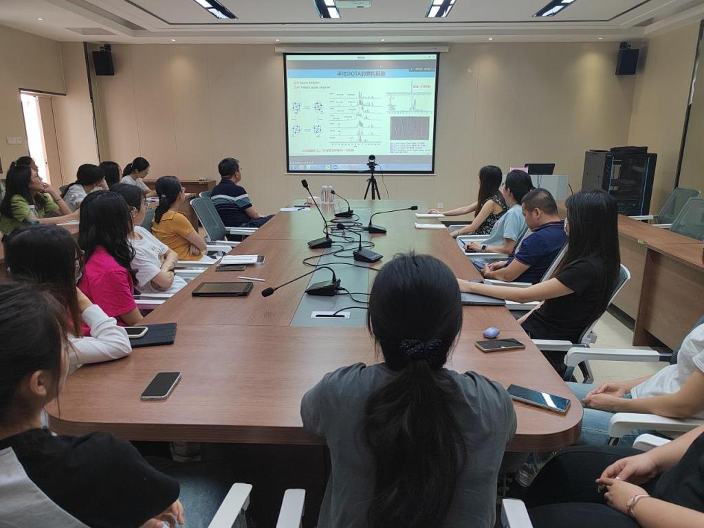 戴利雄研究员主要从事镧系金属配合物的研究,其中开发的手性大环类配体及配合物在磁共振成像、光学分子成像及放射诊疗中的应用前景广泛。会上,戴利雄研究员用生动的语言,深入浅出,娓娓道来,首先展示了当前临床上癌症疾病的诊疗缺陷,然后提出了如何解决这些问题的方法,再结合自己所做研究,切实地解决了临床上肿瘤等软组织病变的早期诊疗中核磁共振成像造影剂弛豫率低、毒副作用大和水溶性差等缺陷。讲座结束后,与会人员积极与戴利雄研究员互动,展开热烈的交流与讨论,并纷纷表示此次讲座不仅为自己的医学研究提供了有力的指导,而且还开拓了思路,提高了疾病诊疗水平,收益颇丰。