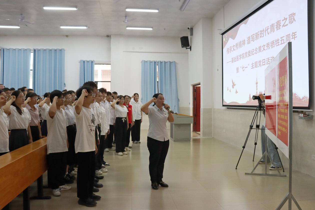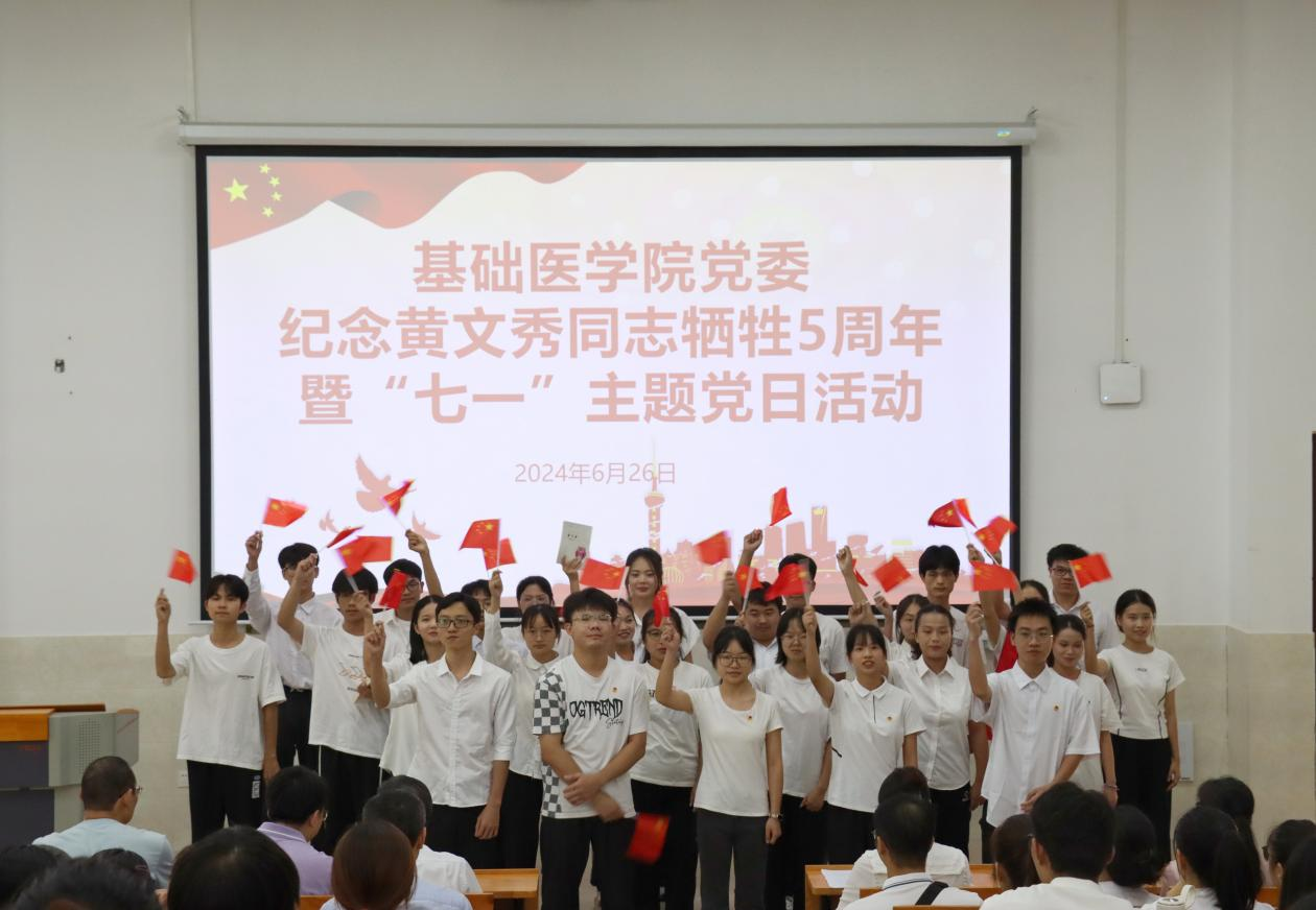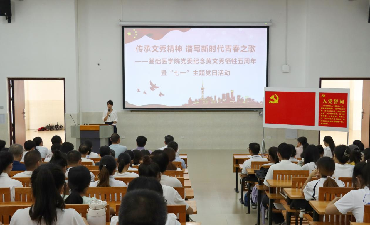 2024年是黄文秀同志牺牲5周年,为深入学习贯彻习近平总书记对黄文秀同志先进事迹作出的重要指示精神,传承弘扬黄文秀优秀品质,深切缅怀黄文秀同志,引导广大党员干部和青年员工以黄文秀同志为榜样,不忘初心、牢记使命、勇于担当、甘于奉献,在新时代的长征路上做出新的更大贡献,6月26日下午,基础医公司党委在百东校区守正楼A207开展了“传承黄文秀精神 谱写新时代青春之歌”纪念黄文秀牺牲五周年暨“七一”主题党日活动,伟德国际victor1946全体师生党员、文秀班全体员工、各班级员工代表参加活动,活动由卢荣妹副书记主持。