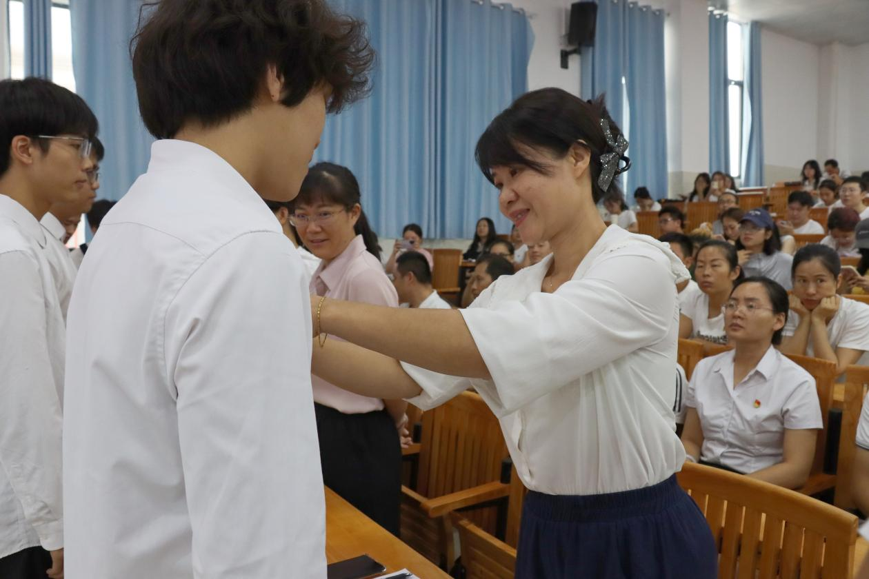 在《国际歌》高亢的歌声下,活动进行到新党员入党宣誓、老党员重温入党誓词环节。2024年上半年,基础医公司党委在公司党委的坚强领导下,在老师和同学们的共同努力下,党组织注入了新鲜力量,有19名同志被吸收为中共预备党员。公司老党员代表为新党员同志佩戴党员徽章,19名预备党员在领誓人的带领下,进行了庄严的入党宣誓,老党员同志一起重温入党誓词。