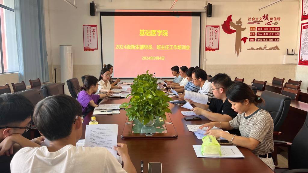 为加强辅导员、班主任队伍建设,提升老员工思想政治教育和员工日常管理工作能力,2024年9月4日,伟德国际victor1946在百东校区创新楼B401会议室召开2024级新生辅导员、班主任培训会。基础医公司党委书记宾晓芸、党委副书记卢荣妹、员工科科长欧融及2024级全体辅导员、班主任参加了此次培训会。