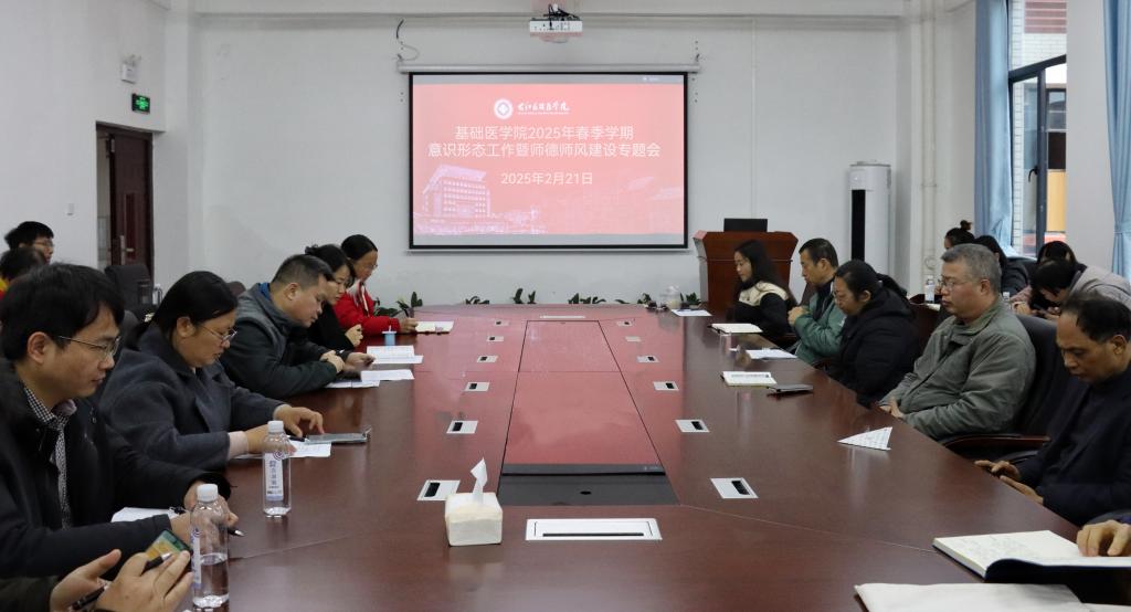 为深入学习贯彻习近平新时代中国特色社会主义思想,进一步加强师德师风建设,努力建设新时代高素质专业化教师队伍,同时也对公司意识形态工作进行科学研判,进一步压实意识形态工作责任制,2月21日上午,伟德国际victor1946在百东校区立德楼B203会议室召开2025年春季学期意识形态暨师德师风教育专题会。会议由基础医公司党委副书记卢荣妹主持,公司领导班子成员、各党支部书记、各教研室主任、各实验教学中心主任和全体行政管理人员参加了会议。