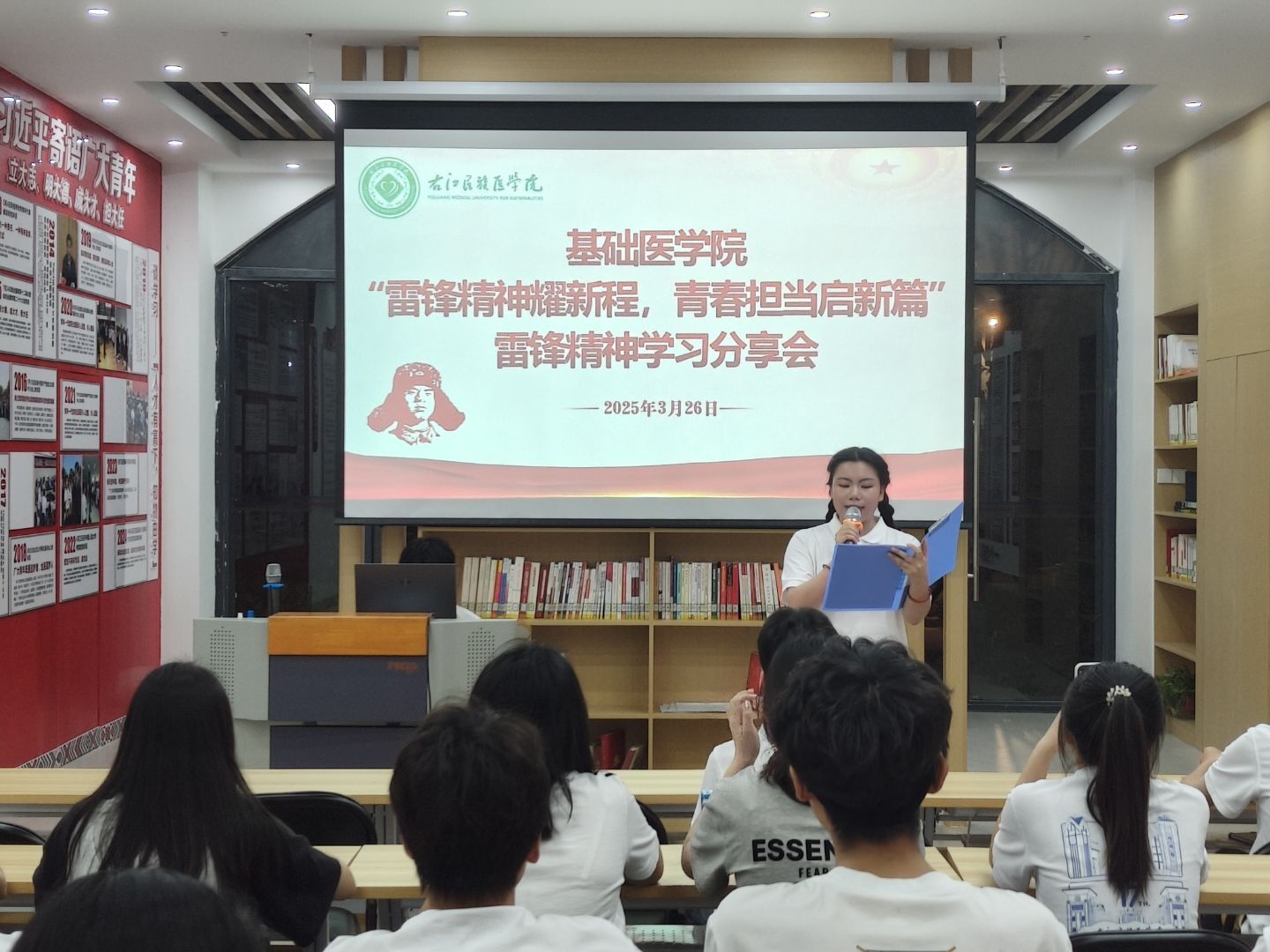 分享会中,同学们集体观看了宣传片《什么是雷锋精神》,深入了解雷锋生平事迹,真切领悟“螺丝钉精神”内涵。在交流互动环节,同学们围绕雷锋精神的时代内涵及医员工如何弘扬雷锋精神进行了分享交流。