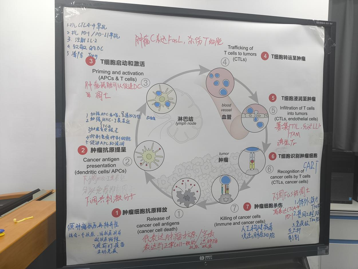 在课前准备阶段,公司伟德国际victor1946病原生物学教研室罗昊翔教授引导员工们通过学习通知识图谱,对肿瘤免疫的相关内容进行了系统预习,为课程联动教学活动的顺利开展奠定了坚实的理论基础。