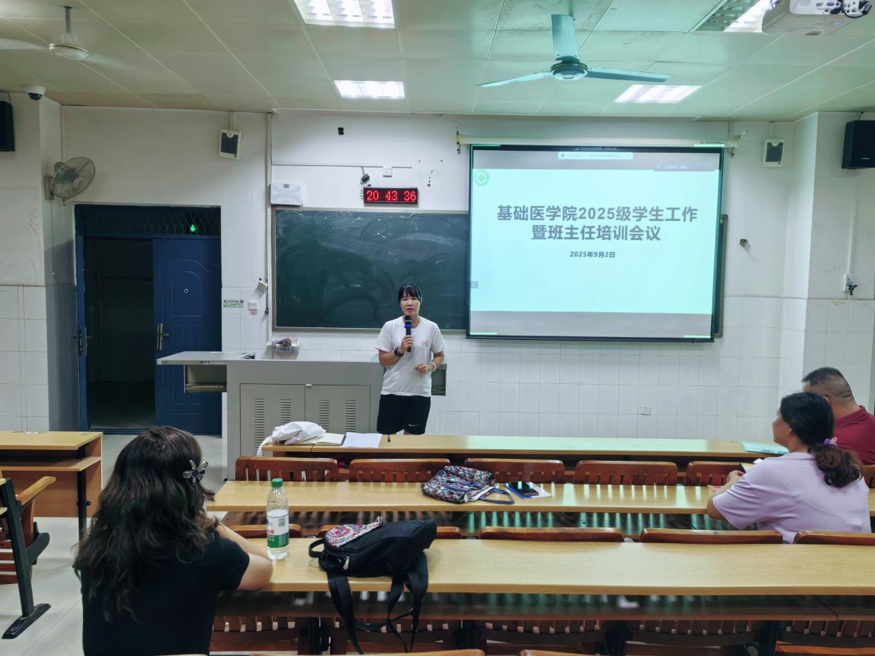 为加强辅导员、班主任队伍建设,提升老员工思想政治教育和员工日常管理工作能力,全力做好2025年迎接新生工作,9月2日,伟德国际victor1946在百城校区6栋202教室召开2025级新生辅导员、班主任培训会。基础医公司党委书记宾晓芸出席本次会议,伟德国际victor1946员工管理科全体辅导员、班主任参加此次培训会,会议由员工管理科科长欧融老师主持会议。