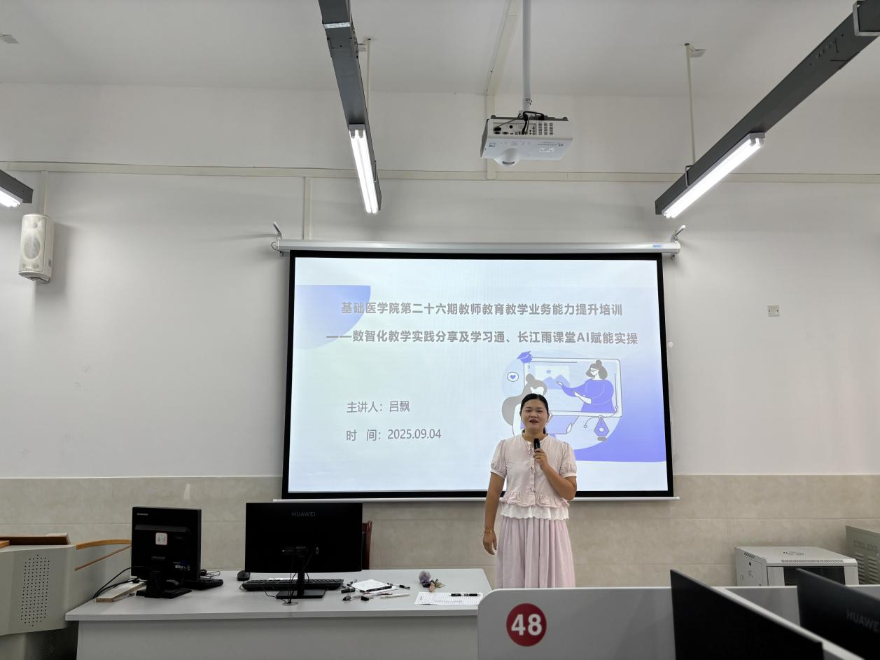 2025年9月4日,伟德国际victor1946成功举办第二十六期教师公司产品业务能力提升培训,本次培训以“数智化教学实践分享及学习通、长江雨课堂AI赋能实操”为主题,由物理学教研室吕飘老师主讲,旨在通过采用前沿技术推动医学教育创新,助力教师提升教学竞赛水平以及数智化教学能力。