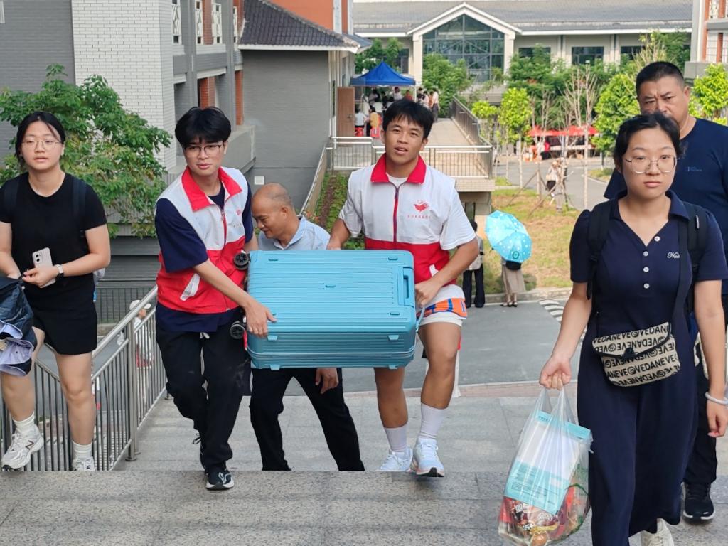 迎新工作中,员工志愿者团队成为校园里一道亮丽的风景线。他们统一着装、分工明确,热情主动地协助新生搬运行李、指引道路、办理手续。从报到点到宿舍区,再到餐饮区域,志愿者们的身影无处不在,他们用周到的服务展现了学长学姐的榜样风采,传递着公司的团结友爱氛围。