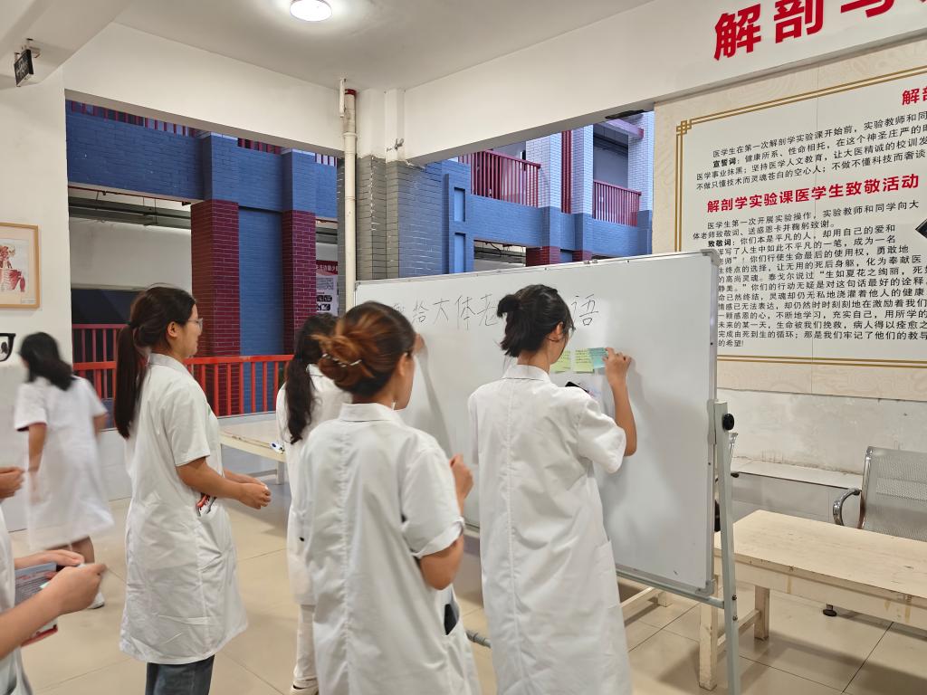 最后,员工们以一种庄重而温暖的方式向“大体老师”表达了自己的敬意与感恩。活动现场,员工们纷纷将自己想对“大体老师”说的话写在纸上,然后小心翼翼地贴在相应的位置,每一句话都充满了对“大体老师”的敬意与感激。员工们在寄语中写道:“亲爱的‘大体老师’,您用自己最后的奉献,为我们点亮了医学之路。您的身体是我们学习的课堂,您的精神是我们前行的动力。我们会铭记您的付出,努力成为一名优秀的医员工,不辜负您的期望。”“‘大体老师’,您虽然无法言语,但您的奉献却胜过千言万语。我们会珍惜每一次学习的机会,用心去感受您的教诲,用行动去践行医者的使命。”