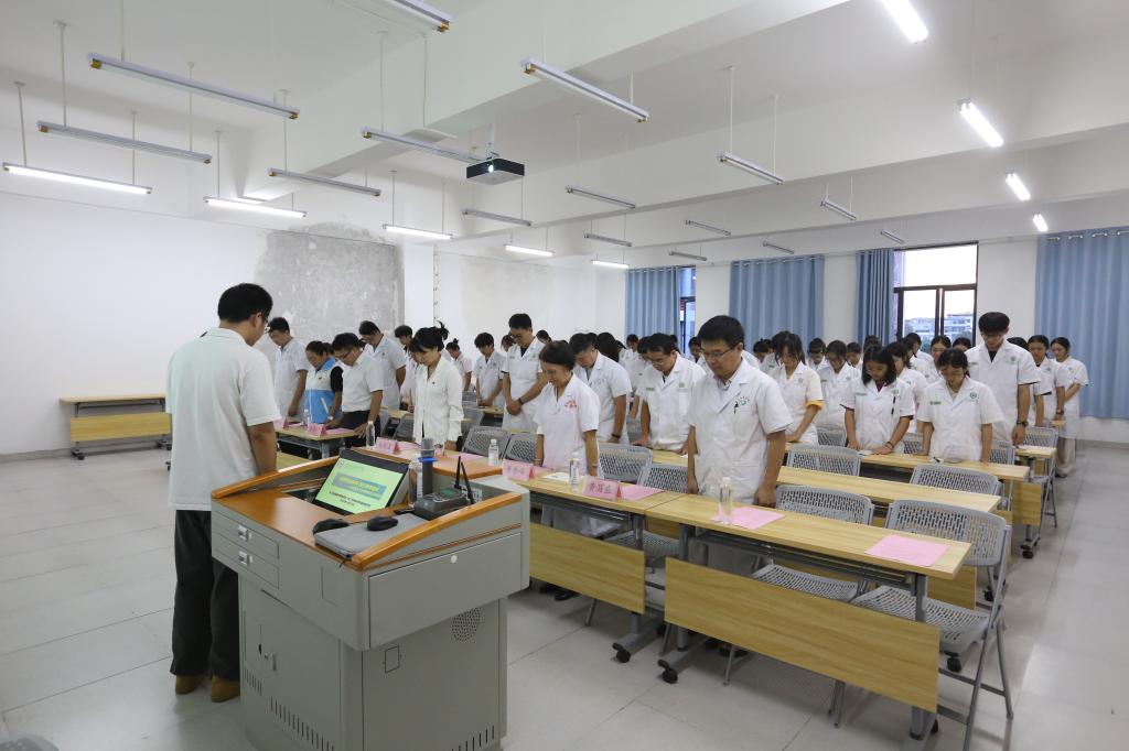 员工在课堂上分享“人体解剖学人文教育征文”内容