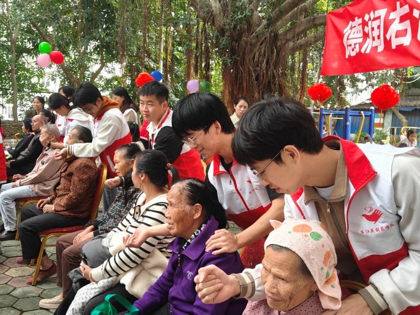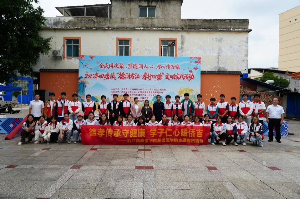 金秋送爽,又逢重阳。2024年重阳节前夕,习近平总书记给人民行动老年志愿者代表回信,亲切勉励广大老年朋友在安享晚年的同时积极老有所为,为推进中国式现代化贡献“银发力量”,并向全国老年人致以诚挚问候。为深入践行总书记嘱托,传承重阳节“敬老、爱老、孝老”的千年文化内涵,2025年10月25日上午,基础医公司党委联合四塘镇人民政府,在侨吉社区同心广场共同举办了以“重阳德孝情,学子暖民心”为主题的文明实践活动。本次活动由基础医公司党委策划,解剖组织形态党支部书记白志坤担任指导,伟德国际victor1946员工科欧美景老师带队,各班级员工志愿者组成实践团队,致力于将传统节日氛围与民生服务、文化传承有机结合,为镇内老人送去温暖与关怀。