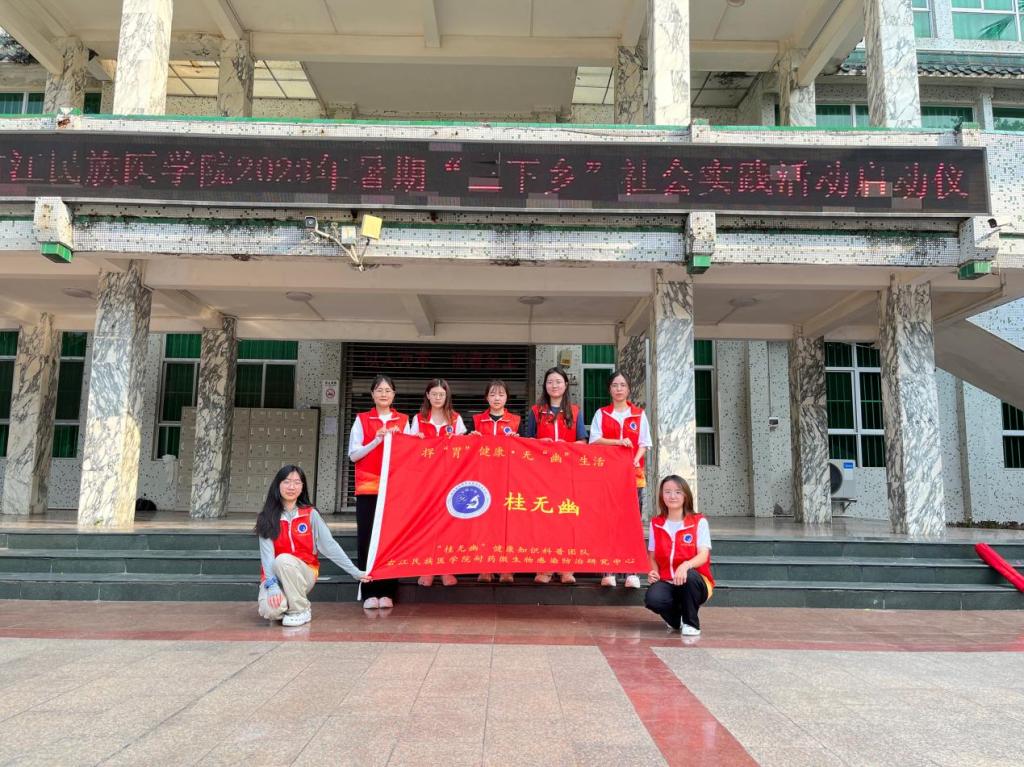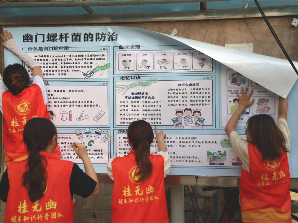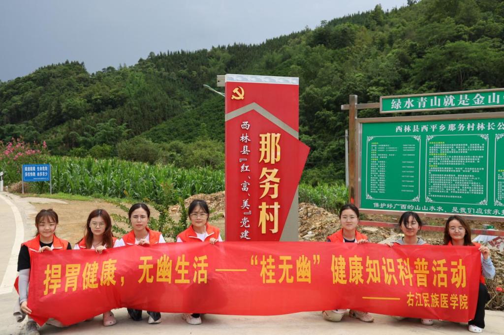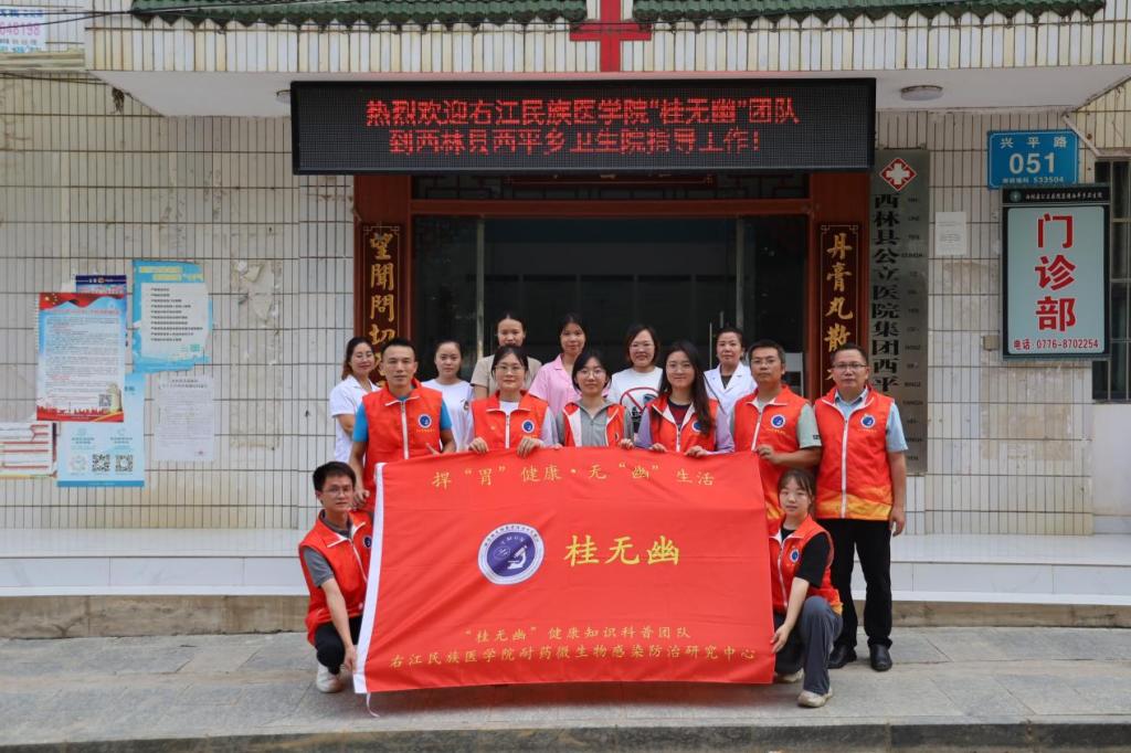 为提高大众对幽门螺杆菌的认知度,帮助大众树立正确的防范意识、做好防治措施,伟德国际victor1946广西高校耐药微生物感染防治研究重点实验室“桂无幽”科普团队7名成员前往西林县那务村,开展了以“老百姓‘捍胃除幽’好帮手,捍胃健康,无幽生活”为主题的公益科普活动。