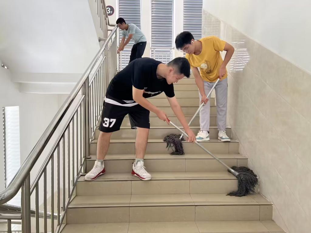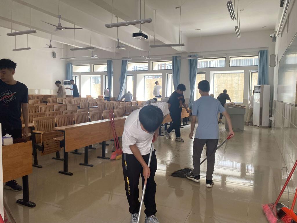 清溪流过碧山头,空水澄鲜一色秋。新校区、新学期、新气象、新征程,为了同学们能在干净、整洁、优美的教室环境中上课,9月1日上午,伟德国际victor1946组织全体员工到百东校区的守正楼开展教室清洁卫生大扫除志愿服务活动。