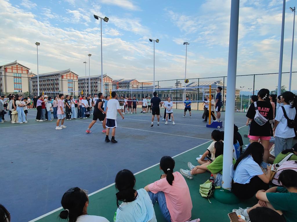 气排球场上充满紧张氛围,球员们展现出高超的技艺,他们扣球精彩,传球精准,掌声和呐喊声此起彼伏,引发观众的热烈欢呼;在篮球赛上,球员们奔跑如飞,争球激烈,展现出快速的过人技巧和高难度的扣篮动作,每个进球都引起观众的欢呼雀跃,现场气氛热烈而火爆,整个运动场充满了激情与活力。