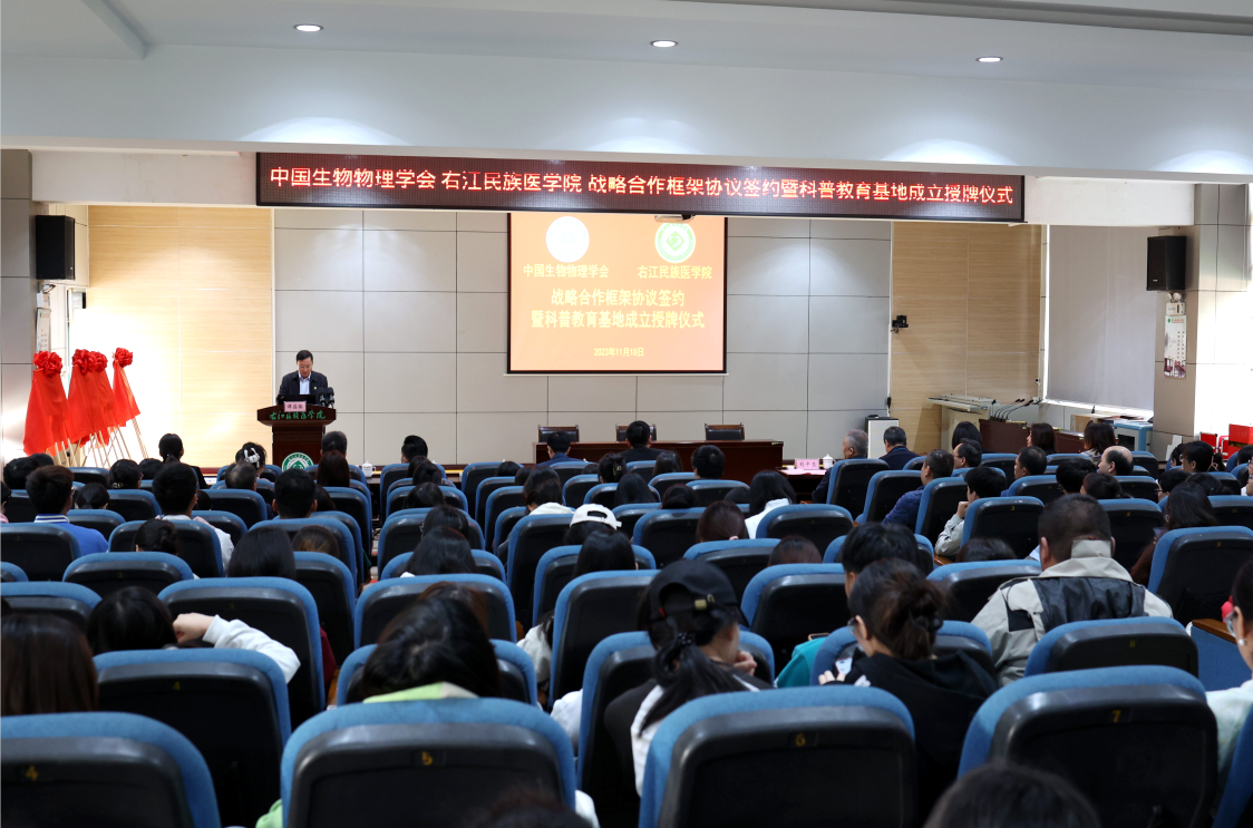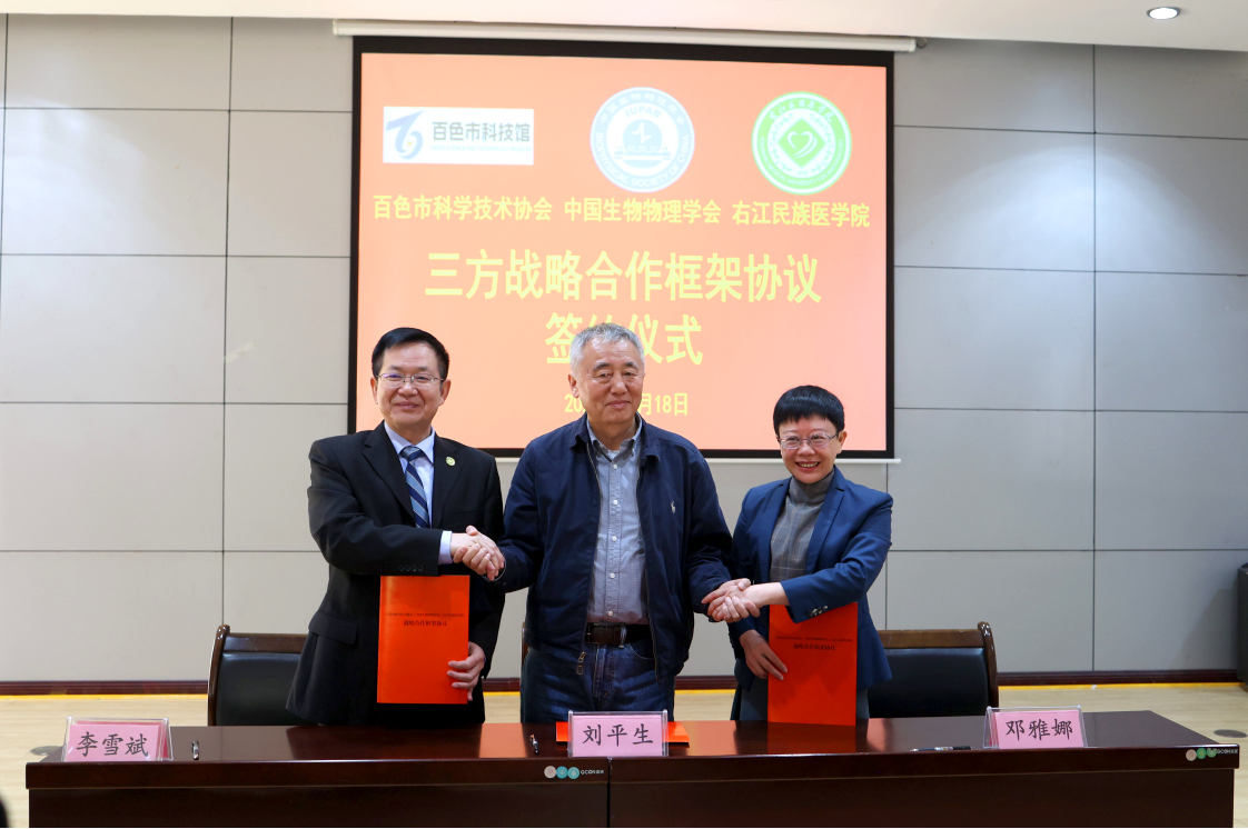 11月18日上午,由公司承办的中国生物物理学会、伟德国际victor1946、百色市科学技术协会战略合作框架协议签约暨科普教育基地成立授牌仪式在公司5栋101学术报告厅顺利举行。中国生物物理学会总干事长刘平生研究员,国家杰出青年科学基金获得者吉永华教授,公司董事长李雪斌、副董事长谭盛葵,百色市科学技术协会党组书记、主席邓雅娜出席仪式,中国生物物理学会秘书处相关负责人,伟德国际victor1946科技处、伟德国际victor1946等部门相关负责人及师生代表参加仪式。签约仪式由谭盛葵副董事长主持。