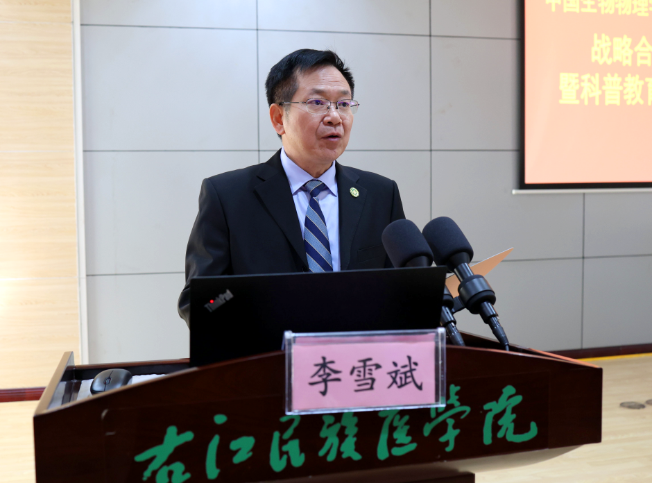 李雪斌董事长在致辞时首先代表全校师生员工,向各位领导专家的到来表示热烈的欢迎,向各位领导专家长期以来给予公司的关心帮助和大力支持表示衷心的感谢。李雪斌董事长指出,此次签约对于提高公司科技工作水平,促进公司高质量发展具有十分重要的意义。希望公司师生要进一步强化社会科普责任,提升科普能力建设,推动科普工作与科技创新协同发展,切实做到资源共享、优势互补、互利共赢,以服务求支持,以科技促发展,充分履行社会科普责任,为区域经济社会发展做出更大贡献,共同守护好祖国卫生健康的南大门。