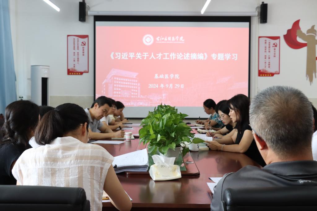 基础医公司党委委员农雁淇同志结合党的二十届三中全会精神作了中心发言。她认为,作为高公司党员教师要把学习贯彻落实党的二十届三中全会精神作为首要政治任务,深刻把握全面建设社会主义现代化国家的宏伟蓝图,准确理解进一步全面深化改革的阶段性任务,牢记为党育人、为国育才的初心使命,立足工作实际,将全会精神转化为推动工作的强大动力和实际成效。