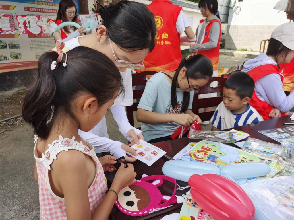 实践团成员教那务村小朋友作手工